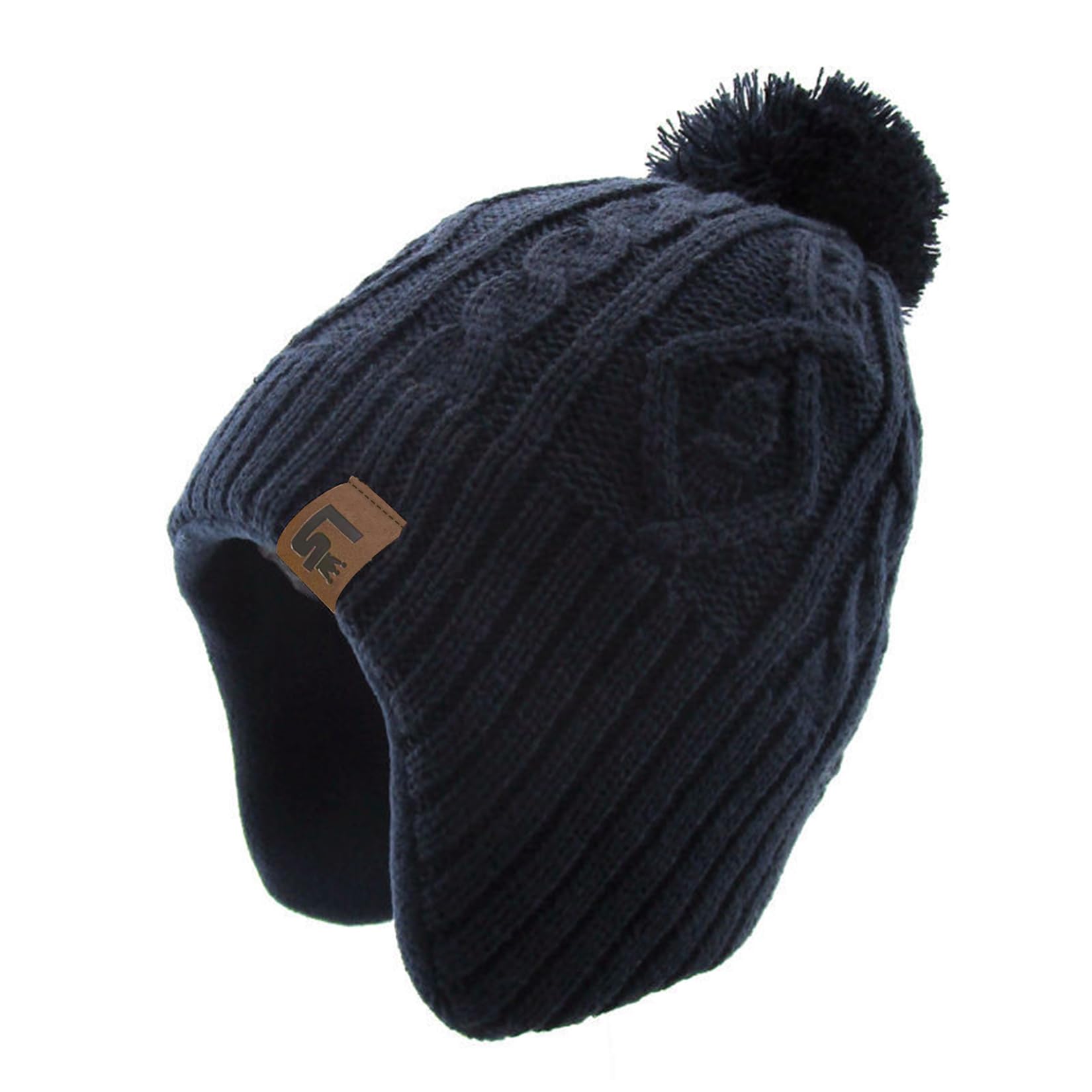 【送料無料】[LittleSpring] 耳あて ニット 帽子 ポンポン付き 防寒 防風 あったか ニットキャップ キッズ用ハット ニット帽 子供服 ジュニア ボーイズ 色:ネイビー-無地、サイズ:M