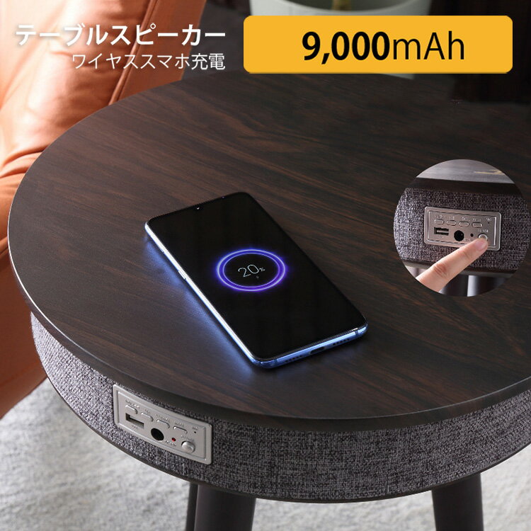 テーブルスピーカー サウンドテーブル スピーカー USB Bluetooth 9000mAh 木目柄【バッテリー 充電器 ワイヤレス オーディオ サイドテーブル スピーカー】