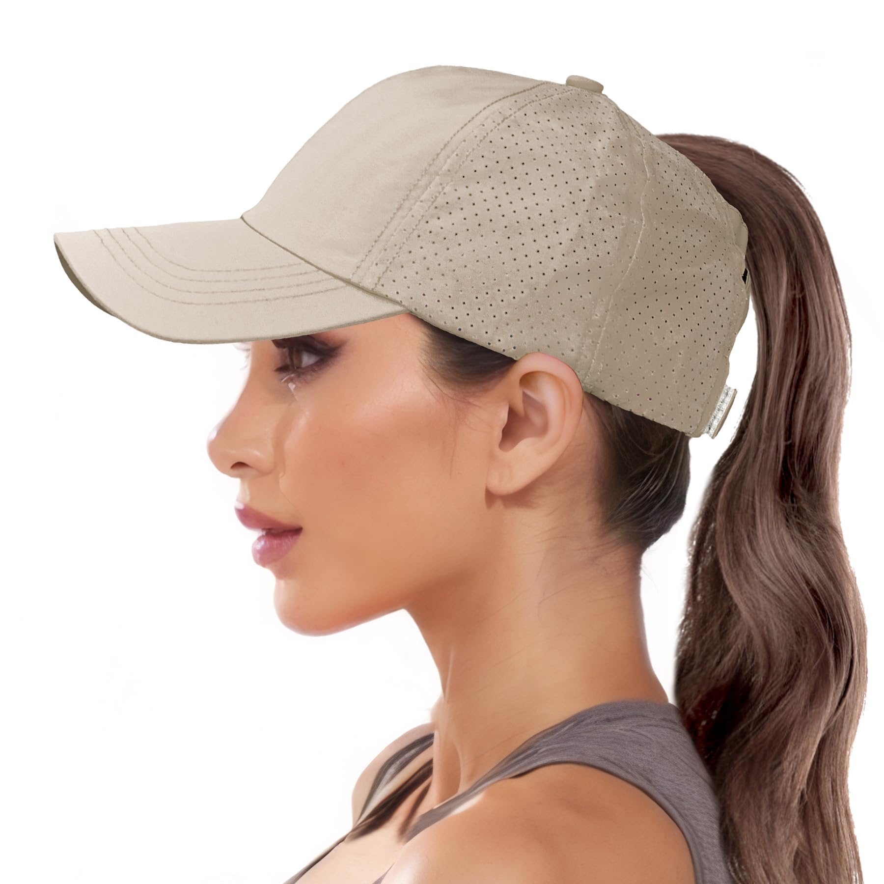 【送料無料】[ハミスト] キャップ メッシュ - 野球帽 日よけ 帽子 ポニーテール穴付き レディース UVカット 速乾 通気 春 夏 無地 軽量 マジックテープでサイズ調整 テニス ゴルフ ランニング アウトドア スポーツ 色:カーキ、サイズ:Free Size