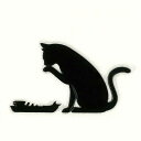 猫 蒔絵シール【Love cat キャット(ごちそうさま) 黒 30mm】 ねこ ネコ 黒猫 シール 動物 ケータイ スマホ カバー iPhone デコ ステッカー かわいい ワンポイント シルエット iQOS アイコス