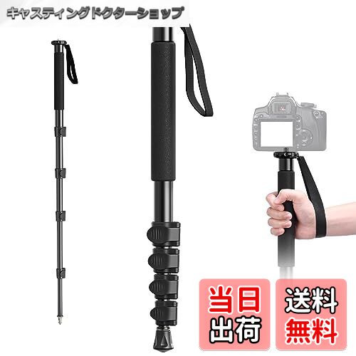 商品情報商品の説明主な仕様 【コンパクトでポータブル 安定した】一脚はコンパクトで軽量なアルミ製+ABS一脚です。アルペンストック(登山杖)としても使える一脚。着脱式のシューやスパイクを備える。剛性の高いチューブを採用したこの5段一脚は、5kgまでの撮影機材を収納でき、重量はわずか378gです。わずか43cmにまで折り畳むことができて持ち運びに便利なので、バッグに常備しておくことも可能でございます。 【ポータブルトラベル一脚 】一脚とは、ビデオやカメラを1本の棒で支えるモノで、綺麗な映像や写真を残すために作られたサポートアイテムのひとつです。手に持って撮影するよりも安定感があり、手ブレを低減できます。また、山や川岸などの足場が不安定な場所でも安定して撮影できるのもメリットのひとつ。持ち上げたり脚を伸ばしたりすることで高さを出すことも可能で、臨場感のあるカットが欲しいときに適しています。 【滑り止めラバーグリップ】: テクスチャード加工のラバーグリップは、使用中にしっかりとホールドし、長寿命とプロユースのために設計されたアップグレードです。 取り外し可能なリストストラップでセキュリティを強化します。 【幅広い汎用性】頂部の1/4と3/8互換ネジのおかげで、異なる設備が搭載可能となります。リバーシブルの1/4インチ & 3/8インチの取り付けプレートのねじにより、ほぼすべてのカメラ、ビデオカメラ、ボールヘッドを取り付けることができます。フットペグは取り外し可能で、3本の足に付け替えて使用することもできます。 【2in1モダンで機能的】 一脚は2イン1のゴム足と金属足でデザインされています。 アウターラバーパッドを引き出して金属足に作ることができるので、様々な使用シーンに合わせることができます。 付属のハンドルを取り付けて一脚をトレッキングポールとして使用できます。