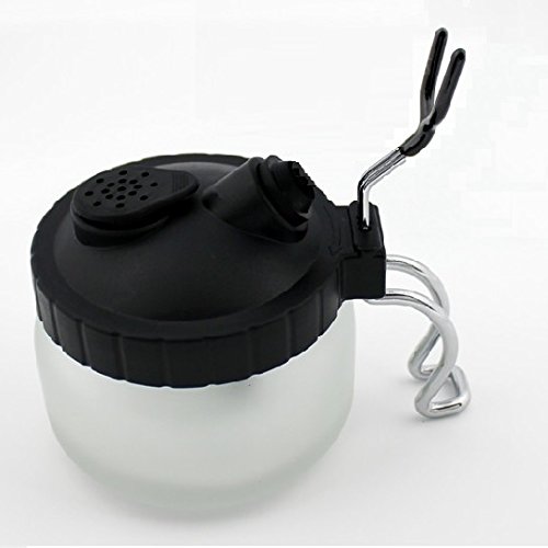 .サイズ(約)直径9cm 高さ8〓.素材:ポット部/ガラス、フタ部/樹脂、ペンホルダー部、フック部/金属 .排気口の部分のキャップは取外せて中にフィルターが入ってます。 .エアーブラシの洗浄用やエアブラシホルダーとしてもお使いいただけます。 商品の説明 エアブラシの空吹きや洗浄時の塗料飛散防止、シンナー臭の軽減にお役にたてると思います。 エアブラシにのカップ内に残った塗料を溜め込んで置くのにも便利です。エアブラシのノズルをノズル受けの穴に差し込んで洗浄噴射します。本体は透明ガラス製なので、中に溜まった塗料の状態が一目で分かります。扱い方も簡単でノズル受けは、プロスプレー用とエアブラシ用の2種入りです。 ※注意 : エアーブラシ付属しておりません。