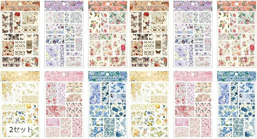 フラワー 柄 デザイン ステッカー 6種 セット シール 花 コラージュ 手帳 デコ DIY スクラップ (2セット)