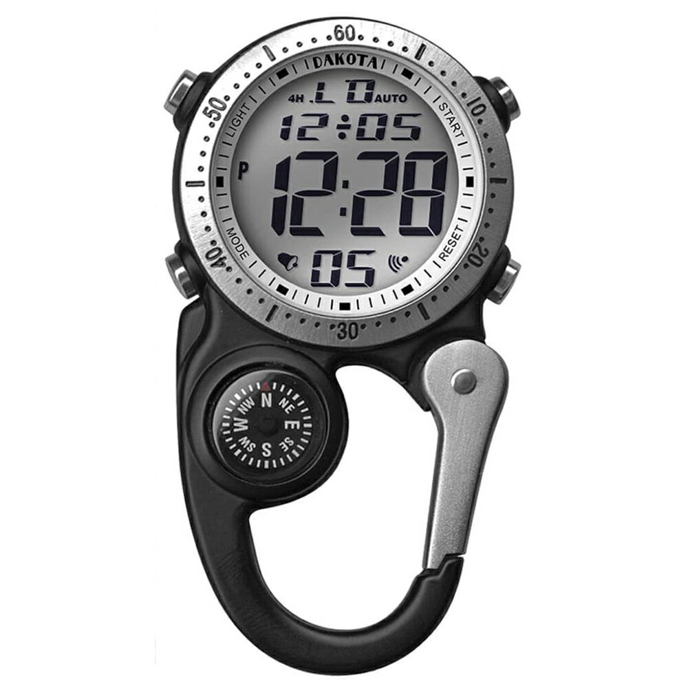 Dakota カラビナウォッチ 方位磁針付き デジタル時計 マイクロライト 多機能 ブラック DK30863 ダコタウォッチ ミリタリーウォッチ 軍用時計 軍用ミリタリーウォッチ 軍用ウォッチ カラビナ時計 カラビナ付き時計 カラビナ付きウォッチ カラビナ型ウォッチ カラビナ型時計