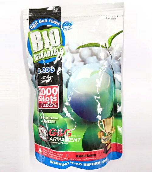G&G bb弾 バイオ 0.20g ホワイト 6mm バイオBB弾 約2000発 【G-07-147】