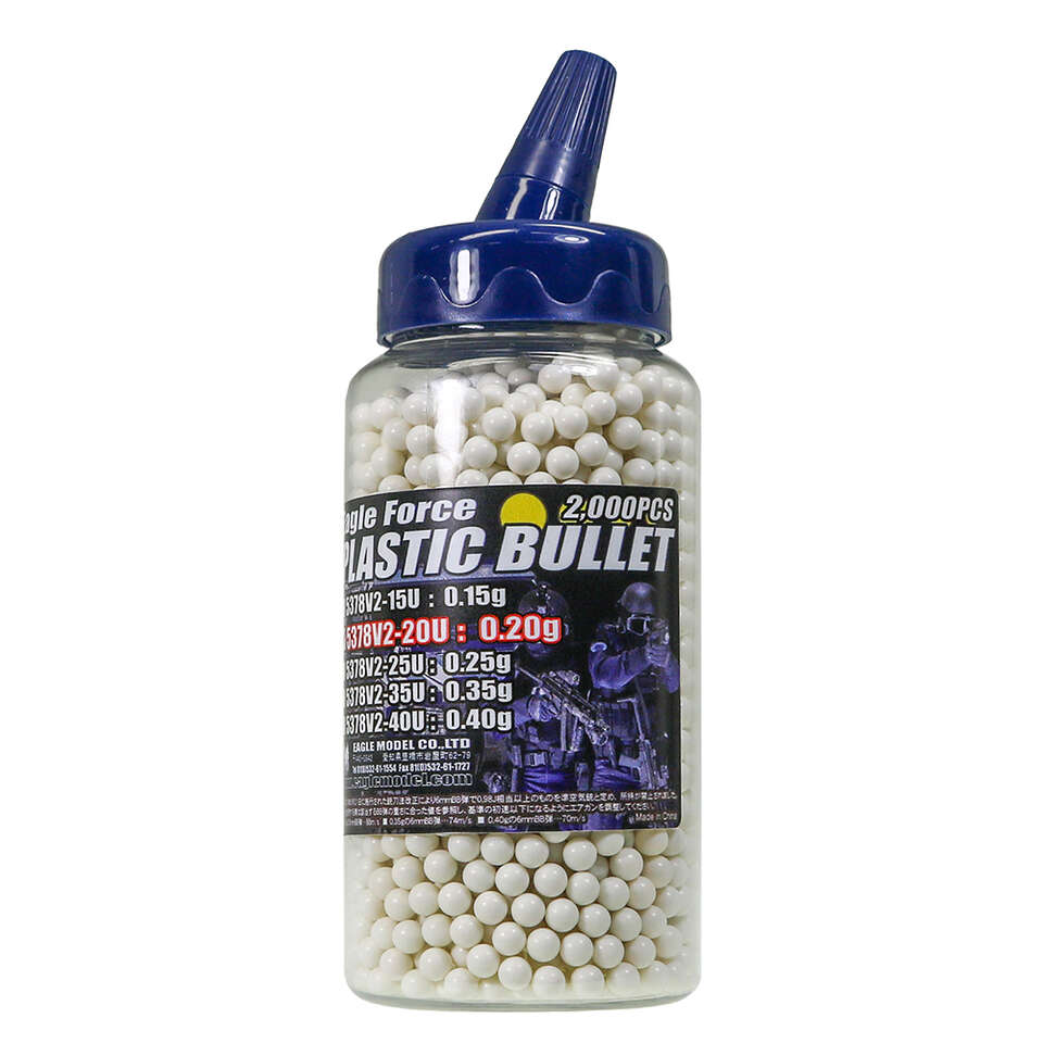 イーグルフォース(EAGLE FORCE)/5378V2-20U/プラスチック・BBブレット 0.20g V2 2000発 ボトル入(6mm弾・ホワイト)