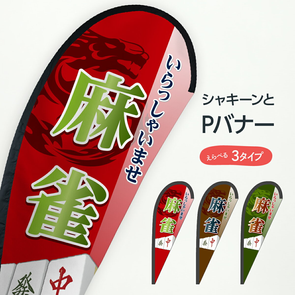 のぼりに代わるスタイリッシュおしゃれバナー。最近よくみるようになったけど「なにあれ?」の正体がPバナーです。セーリングバナーやフライングバナー、スイングバナーと呼ばれることもあります。PはパピヨンのPで蝶々という意味です。形が何となく似ています。スタイリッシュな印象を与えることが出来るので、のぼり旗のような旗を飾りたいけどちょっと雰囲気に合わないなんて悩みも吹き飛びです。麻雀 Pバナー マージャン ボードゲーム アミューズメント 納期2週間程度 サイズレギュラーサイズ 67cm × 165cmラージサイズ 95cm × 215cm 変更できますジャンボサイズ 100cm × 280cm 変更できますエクストラサイズ 125cm × 330cm 変更できます 生地ポンジPバナーには専用ポールが必要です