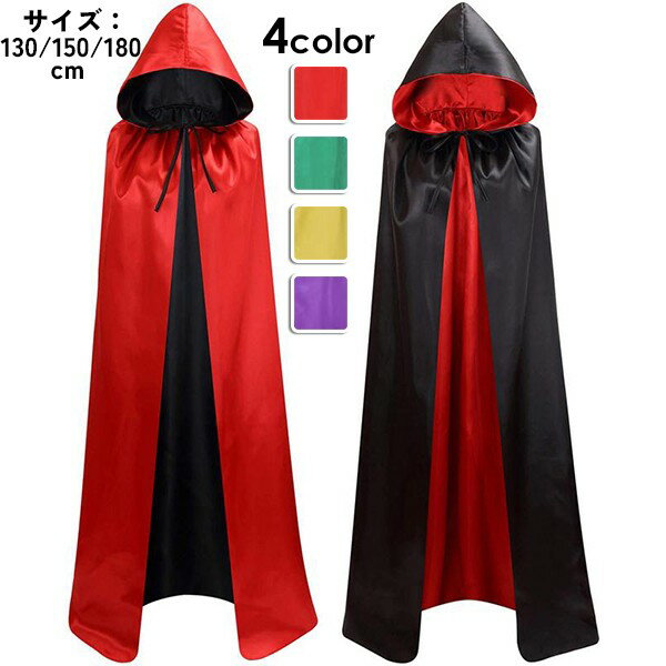 マント コスプレ 黒 ブラック マントコート ハロウィン リバーシブル フード付き イベント 学園祭 文化祭 コスプレ 仮装 クリスマス ドラキュラ 魔法 ローブ 舞台 130/150/180cm ゴシック 吸血鬼 カラー レッド グリーン イエロー パープル ロング ステージ aa150jcjcg4