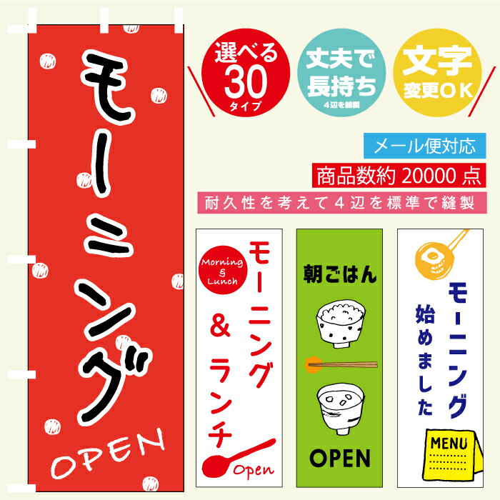 のぼり旗モーニングのぼり旗寸法60×180 丈夫で長持ち【四辺標準縫製】のぼり旗 送料無料【3枚以上で】のぼり旗 オリジナル/文字変更可/条件付き送料無料