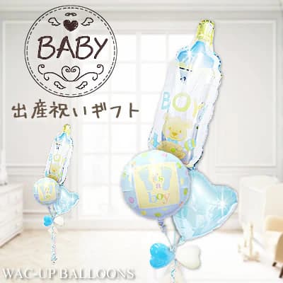 出産祝い バルーン 電報 ギフト 贈り物 バルーン ブーケ 風船 プレゼント 男の子 お祝い 赤ちゃん 記念 撮影 装飾 飾り付け 大きい 哺乳びん 笑顔 うれしい かわいい 赤ちゃんよろこぶ 出産祝ステップボーイ男の子ミルクdeちゅ哺乳瓶3バルーンセット