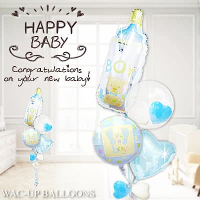 出産祝い 大きい 哺乳びん バルーン 電報 ギフト 贈り物 バルーン ブーケ 風船 プレゼント 男の子 お祝い 赤ちゃん 記念 撮影 装飾 飾り付け 笑顔 うれしい かわいい 出産祝ステップボーイ男の子ミルクdeちゅ哺乳瓶5バルーンセット
