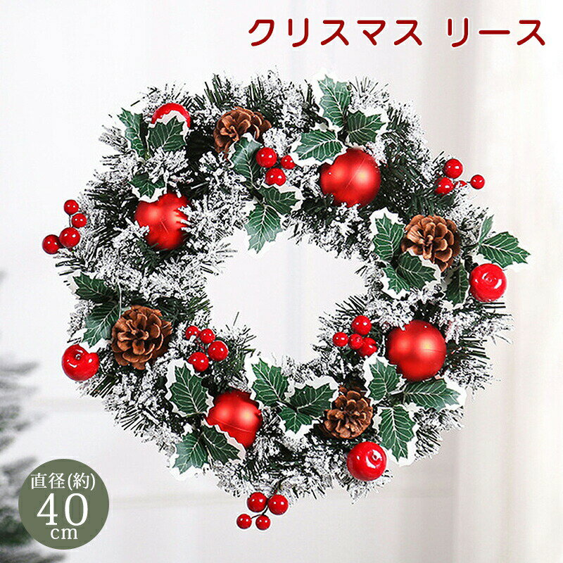 【商品説明】サイズ(単位:cm) 直径約 40cm カラーグリーン(写真※ご参考程度) 素材ポリエチレン+その他用途クリスマスプレゼント 女性 母 お誕生日 プレゼント お祝い 結婚祝い 結婚式 記念日 開業祝い 開店祝い オープン 新築祝い 引っ越し祝い クリスマス お正月 お中元 お歳暮 お年賀 成人式 成人式お祝い セット内容クリスマス オーナメント(※他は商品に含まれません)商品紹介 毎年のクリスマスリース! 飾るだけでお部屋を華やかに演出してくれます。 玄関やお部屋に飾ると、雪が積もったような松かさが、素敵なクリスマスを演出してくれます☆ お部屋に、玄関に…お好きな場所に飾ってお楽しみください。 ご自宅用としてもギフト用としても喜ばれるクリスマスリースです。配送方法佐川急便送料 ご注意事項◆ 商品写真はできる限り実物の色に近づけるよう加工しておりますが、お客様のお使いのモニター設定、お部屋の照明等により実際の商品と色味が異なる場合がございます。 ◆ 平置き計測となっておりますので、2・3cmの誤差が生じる場合がございます。 ◆ プリント生地の商品については、生地の裁断・縫製方法により写真と同様の柄が出ない場合がございます。◆ 楽天から届く自動配信メールは【送料】や【割引】等が正しく計算されない場合があります。 後ほど当店からのメールにて改めて正しい合計金額をご連絡致します。 返品対応 返品・交換は原則としてお受けしておりません。 初期不良や弊社都合による著しい発送遅延などが発生した場合は、未使用の商品のみ到着日から7日以内にご連絡頂ければご返金・交換対応させて頂きます。 明細書・領収書※当店では紙資源保護の観点から、納品書・領収書は商品と同封しておりません。 ※必要な際は備考欄に記載をお願いします。・ ※(領収書の宛名など必要事項を合わせてご記入しご連絡ください)。 ※予めご了承くださいませ。 メーカー希望小売価格はメーカーカタログに基づいて掲載しています