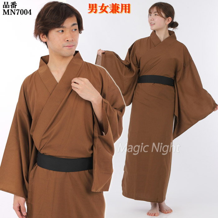 カラー着物 茶【時代劇 宴会 余興 仮装 コスチューム 衣装 コスプレ 舞台 二次会 カラオケ 大喜利 落語 寸劇 和衣装 ブラウン 黒帯付き 男性 女性 メンズ レディース 大人用】マジックナイト MN7004