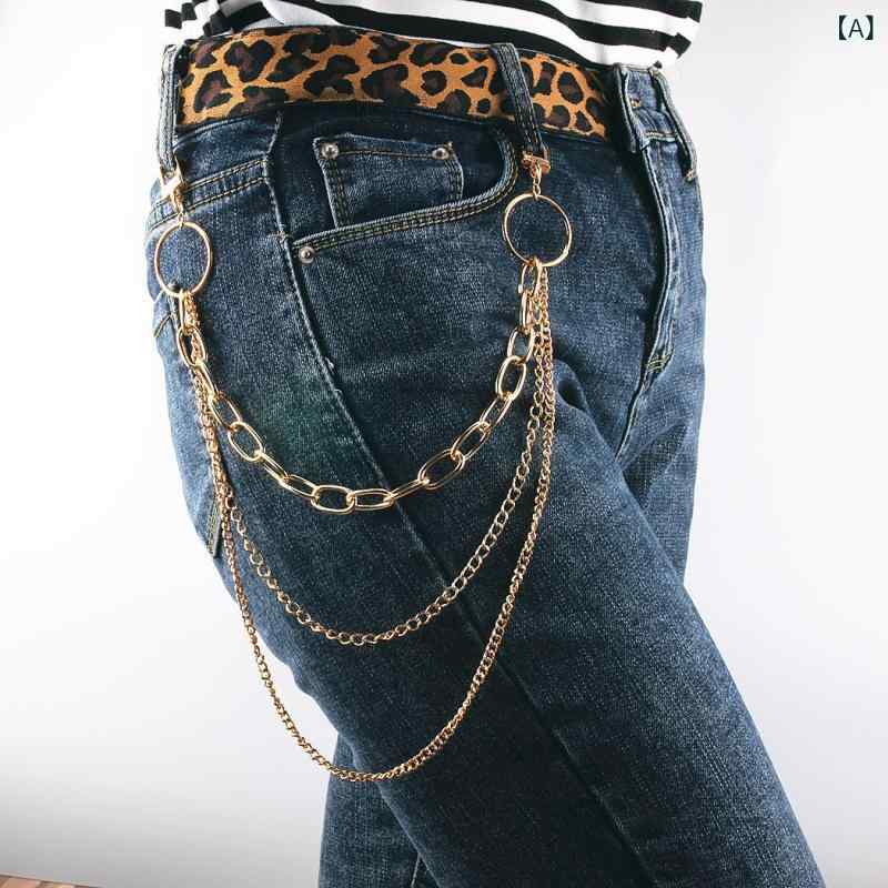 パンツチェーン メタル パンク ロック ウエストチェーン キーホルダー ジーンズ デニム ストリート系 欧米風 ヒップホップ ファッション小物 ゴールド シルバー 普段使い おしゃれ 万能アイテム(x2)
