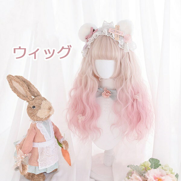 ウィッグ ツートン ロリータ 原宿風 ロングウィッグ かつら 巻き毛 ぱっつん前髪 パーマ ゆめかわ グラデーション ピンク コスプレ コスプレウィッグ 可愛い 長髪 ロング 耐熱ウィッグ コスチューム 仮装 大人 自然 イベント 文化祭 普段使い ハロウィン dp073n1n1t2