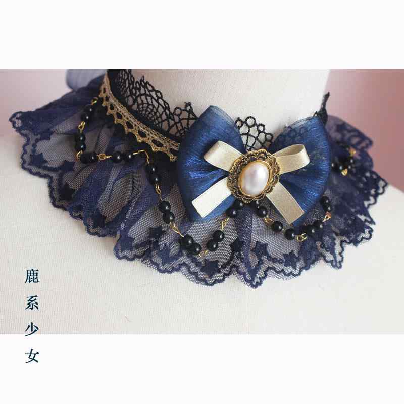 ロリータ ファッション シアン ブラック 宮殿 ヴィンテージ風 ロリータ ネックレス ティーパーティー ゴージャス レース 重厚 ネックレス レトロ