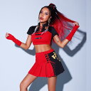 ダンス衣装 セットアップ レディース チャイナ風 へそ出し スタンドカラー プリーツスカート ジャズ ヒップホップ 大人 ステージ グループ パフォーマンス コスプレ ブラック レッド