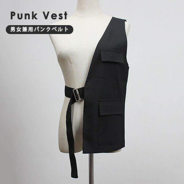 パンクベルト イレギュラー カットベルト ワンショルダーベスト ゴシック ロックパンクベスト ビジュアル系 黒 ブラック スティームパンク レディース コスチューム ハロウィン コスプレ小道具 男女兼用 舞台 ステージ ds082x1x1t2