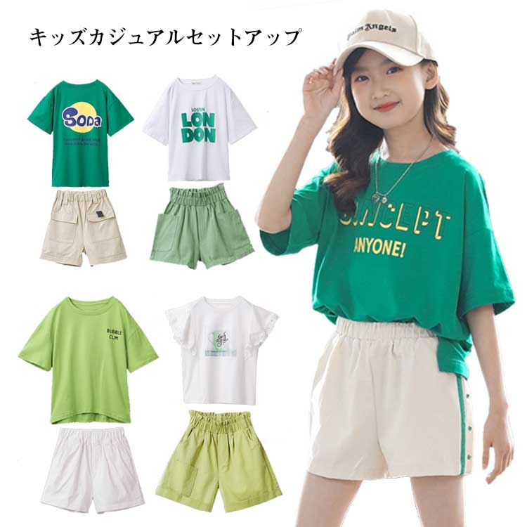 セットアップ 女の子 春夏 夏 春物 夏服 夏物 トップス 半袖 tシャツ ボトムス キッズ 短パン ショートパンツ 110cm 120cm 130cm 140cm 150cm 160cm トレーナー 子供服 子ども 小学生 カジュアル かわいい おしゃれ