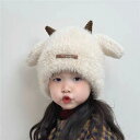 ニット帽 キッズ ベビー 男女兼用 男の子 女の子 秋冬 韓国風 かわいい 牛角デザイン 耳あて付き もこもこ ふわふわ 防寒 暖かい 小顔効果 コーデしやすい ニットキャップ ピンク ホワイト カーキ ベージュ