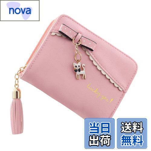 【送料無料】[Kingsie] 財布 ミニ財布 レディース 短財布 二つ折り かわいい 猫チャーム タッセル付き 財布 ウォレット カード入れ 小銭入れ 女の子 女性用 プレゼント (ピンク)