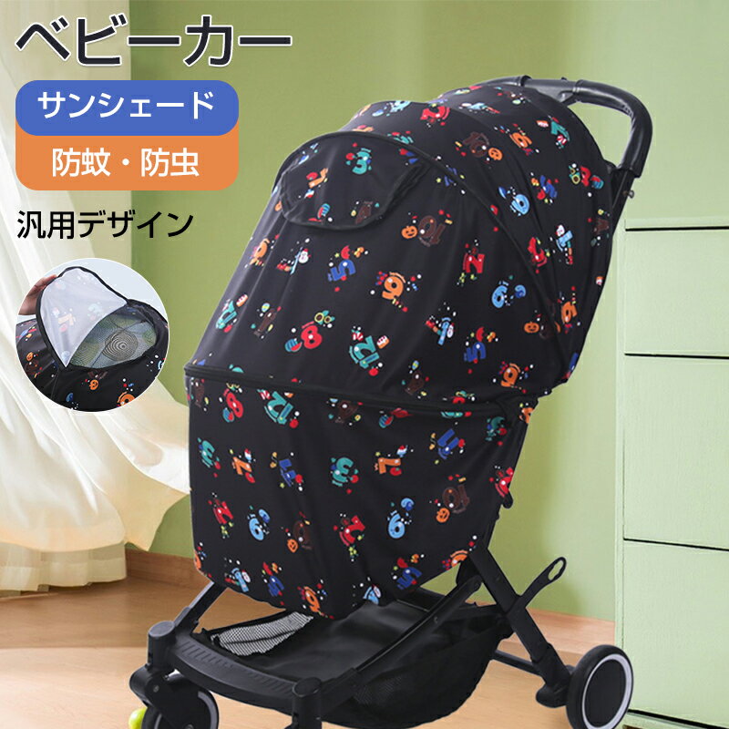 ベビーカー 日よけ サンシェード UVカット 虫除け 蚊帳 折りたたみ カバー 日焼け予防 バギー 後付け 日よけカバー 通気性 日焼け予防 防水 軽量 紫外線対策 暑さ対策 虫よけネット カバー 熱中症対策 お出かけ お散歩 収納便利 幼児 赤ちゃんを守る
