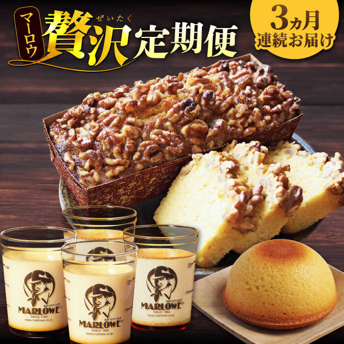 【ふるさと納税】【全3回定期便】マーロウ 贅沢定期便 スイーツ定期便 カスタードプリン フレッシュクリームプリン くるみのパウンドケーキ 横須賀限定箱ボーロ 送料無料 【マーロウ】[AKAF108]