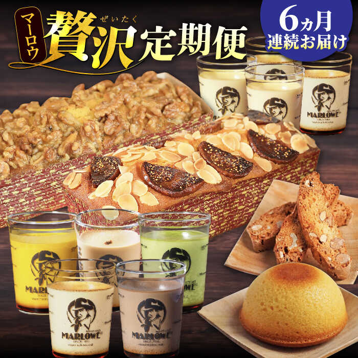 【ふるさと納税】【全6回定期便】マーロウ 贅沢定期便 プリン ビスコッティ くるみ・いちじく・ラムミックスのパウンドケーキ ボーロ バスクチーズケーキ ベイクドチーズケーキ 送料無料【マーロウ】[AKAF109]