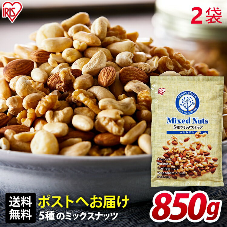 【2袋】ミックスナッツ 食塩無添加 5種 850g ミックスナッツ 無塩 アーモンド くるみ マカダミアナッツ カシューナッツ ピーナッツ 大容量 おやつ おつまみ アイリスオーヤマ