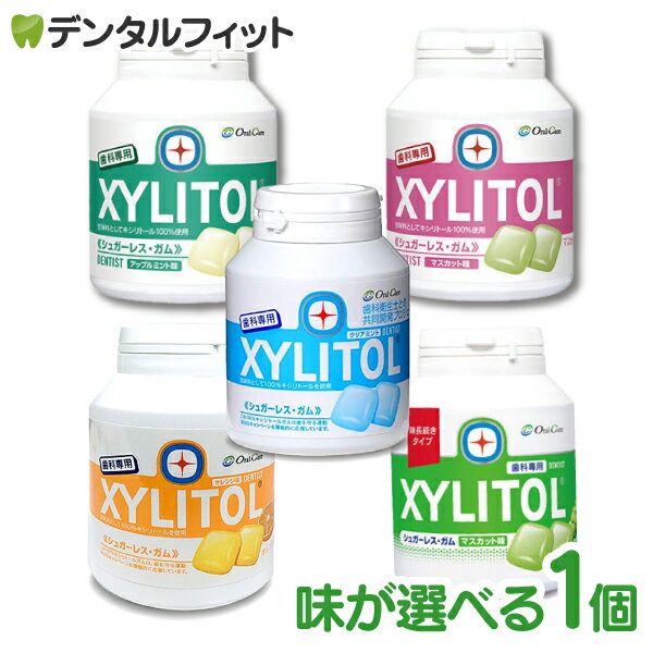 ★★楽天最安値挑戦中★★ 砂糖不使用で歯にやさしいキシリトールガムです。 ガムを噛むことは、美味しく食べるだけの気軽に始めやすいデンタルケア習慣です。 保管に便利なボトルタイプなので、お家やオフィスに常備しておけます。 キシリトール100%使用 キシリトール以外の甘味料は使っていません。 歯の主成分を配合 歯の主成分であるリン酸カルシウムを配合。 歯にくっつきにくいガムベースを使用 矯正装置や義歯につきにくいガムベースを使用。 ※捨て紙は入っておりません。 【味 / 原材料】 ■アップルミント 甘味料(キシリトール)、ガムベ—ス、増粘剤(アラビアガム)、香料、リン酸一水素カルシウム、フクロノリ抽出物、デキストラナ—ゼ、光沢剤、ヘスペリジン 、(原材料の一部にゼラチンを含む) ■マスカット 甘味料(キシリトール)、ガムベ—ス、増粘剤(アラビアガム)、香料、リン酸一水素カルシウム、着色料(紅花黄、クチナシ)、フクロノリ抽出物、デキストラナ—ゼ、光沢剤、ヘスペリジン、(原材料の一部にゼラチンを含む) ■クリアミント 甘味料(キシリトール)、ガムベ—ス、増粘剤(アラビアガム)、香料、リン酸一水素カルシウム、フクロノリ抽出物、デキストラナ—ゼ、クチナシ色素、光沢剤、ヘスペリジン、(原材料の一部にゼラチンを含む) 【注意】 ●一度に大量に食べると、体質によりお腹が緩くなる場合があります。 ●100%キシリトール・ガムは表面が互いにくっつきやすい性質がありますが、品質上は問題ありません。直射日光や高温多湿のところを避け、しっかり蓋をして保管の上、開封後はお早めにお召し上がりください。 ●容器に衝撃を与えると中のガムが割れることがあります。 【商品区分】 食品 【製造メーカー】 株式会社オーラルケア【ご注意(免責)事項】当店では、サイト上に最新の商品情報を掲載するよう努めておりますが、メーカーの都合等により、商品規格や仕様(容量・成分・パッケージ・原産国など)が予告なく変更される場合がございます。このため、実際にお届けする商品と商品ページ上の情報表記が異なる場合がございますので、ご使用前には必ずお届けした商品の商品ラベルや注意書きをご確認ください。また、商品情報についてページ表記以外の詳細が必要な場合は、メーカー等にお問合せください。