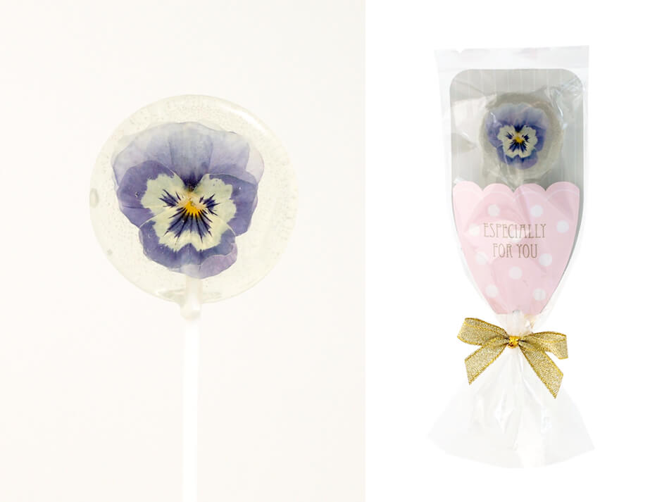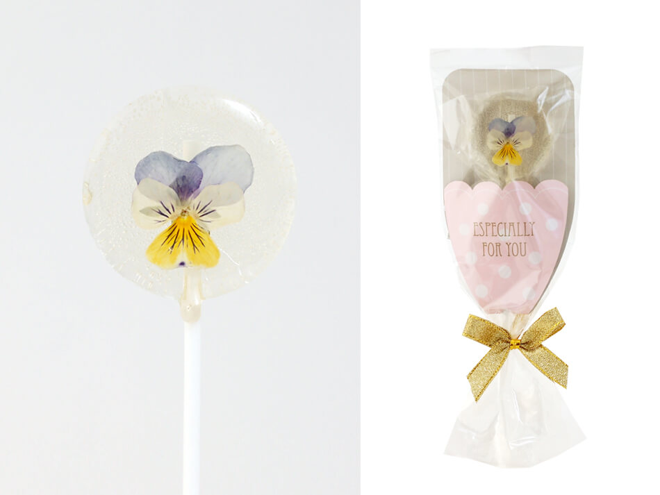 エディブルフラワーキャンディ ビオラ 薄紫 1本 おうさまのおやつ スティックキャンディ キャンディー キャンデー あめ かわいい 個包装 プチギフト プレゼント ギフト ウエディング ブライダル 結婚 パーティー イベント 誕生日 お返し お世話になったお礼