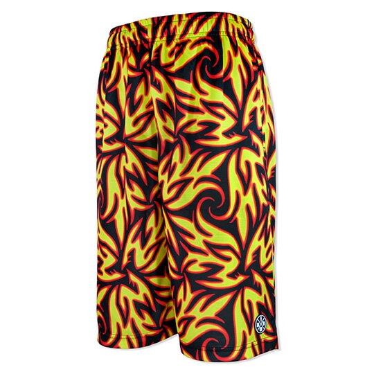 HXB Graphic Mesh Pants 【LUDSCHI】 EU@オーストリアのアーティスト"Tobias Ludescher" a.k.a. LUDSCH / ルッチとHXBのコラボレーションパンツがNEWリリース。 ヨーロッパで最もフェイマスなスノーボードムービー”PirateMovieProduction”の専属カメラマンであり、ムービーのアートディレクションからアートブックとパッケージデザインまでを手描きとデジタルを巧みに操りマルチに監修する生粋のクリエーター”LUDSCHI”。 PirateMovieProductionをはじめ、Red Bull、Burton、Union、Dragon Optics、Element Skateboardsなどにアートワークを提供。 今回は、彼が手掛ける"曼荼羅"を意識したオリジナルパターンをHXBが配色と配置をアレンジし、バスパンに落とし込みました。 三角状(バミューダ)のパターンをズームアップして配置したファイアーカラーの”Fire Zoom Bermuda” リアルセッションによって生み出された、また新しい感覚のデザインをお好みに合わせて是非お試しください。 From the EU, Tobias Ludescher, Austrian artist, a.k.a. LUDSCH, has collaborated with HXB to release great new pants! He is the exclusive photographer of Europe's most famous snowboard movie, “PirateMovie Production”. LUDSCHI is a true creator who does both hand and digital drowning. He supervises everything from movie art direction to package design in multiple pieces. He offers his art work to PirateMovie Productions, as well as Red Bull, Burton, Union, Dragon Optics, and Element Skateboards. This time, HXB arranged the color scheme and layout of his original pattern “MANDARA” and dropped it into the basketball shorts. Mono Spiral is a black-and-white finish with a spiral pattern. Look carefully, the front is open, and the back is a closed whirlpool. Fire Zoom Bermuda is fire colored, with zoomed up triangular (Bermuda) patterns. Grass Wide Bermuda is grass colored, with wide detailed triangular (Bermuda) patterns. These all are created by our session. Pick the new sensations that meet your taste and try them on! 様々なグラフィックをメッシュショーツで表現したHXBの人気シリーズ。 オンコート、ライフスタイル共に対応するポケット付き。 ウエストはゴムとヒモでの調整が可能です。 見た目のインパクトはもちろん、生地には吸水・速乾性に優れ、 軽量でさわやかな肌ざわりが特徴の【ドライグレーダーメッシュ】生地 を使用。