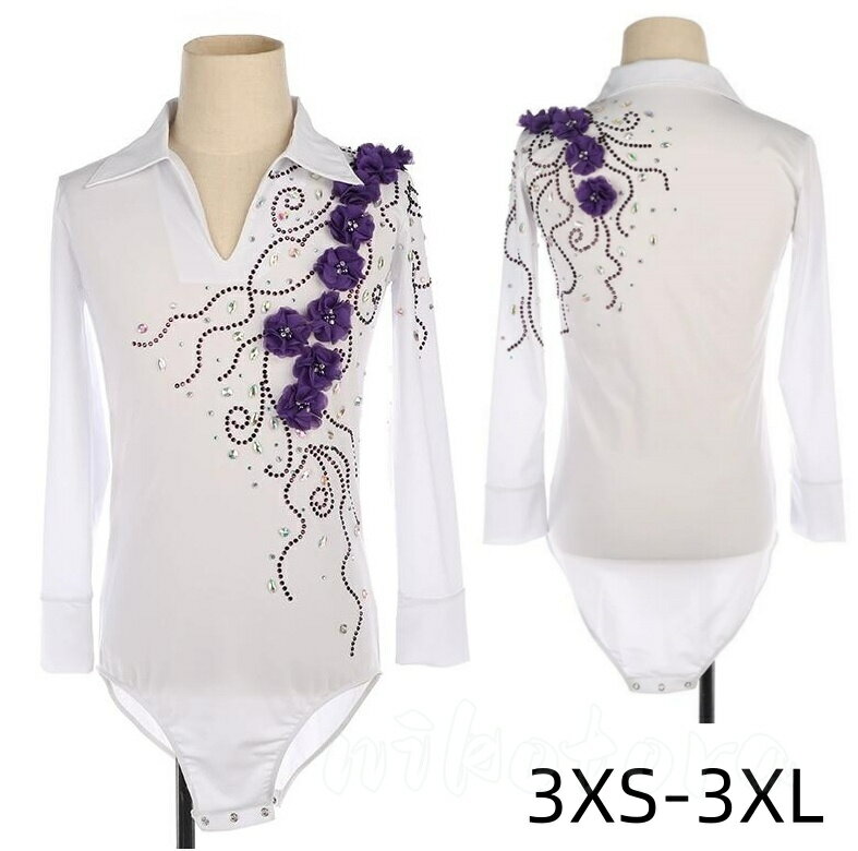 フィギュアスケート 衣装 長袖 つなぎ ボディブリファー 花付き 男の子 メンズ トップス フィギュアスケート スケートウェア アイススケート スケート衣装 専用レオタード レッスン着 新体操 子供 大人 イベント 練習 競技 ダンスウェア