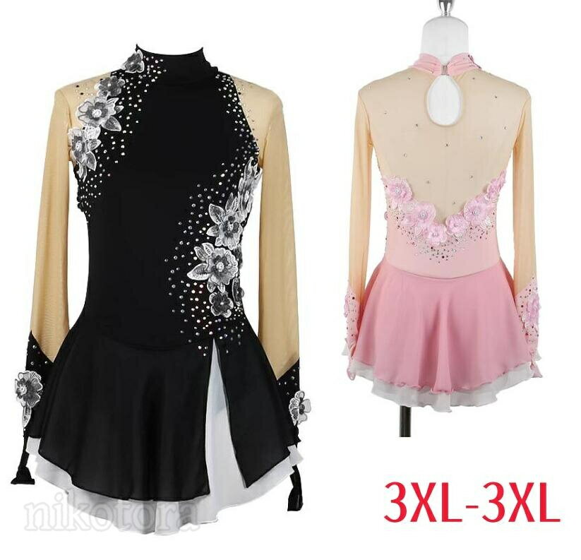 スケートウェア フィギュアスケート 衣装 女子 子供 大人 花飾り 長袖 レオタード スタンダード レッスン 着 アイスダンス 衣装 ダンス衣装 スケート衣装 コスチューム フィギュア スケート ドレス 女の子 試験 練習 着 舞台 発表会 イベント 演出用 競技 黒 白 グリー 紺