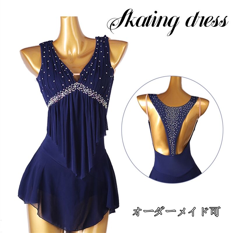 商品内容フィギュアスケート衣装 (バスト パットを含む)カラーネービーオーダーメイドこの商品は無料でオーダーメイドが可能でございます。発注後、メールにて希望サイズをお知らせください。(身長 体重 バスト ウエスト ヒップ 希望の着丈) オーダーメイド商品の場合、返品?交換?キャンセル不可でございます。予めご了承下さい。サイズご購入前に詳細サイズ表をご参照ください。素材ストレッチ生地など特徴着やせ効果絶大 通気性抜群で吸汗?速乾性 着心地も良くデイリーコーディネートにはもちろん 伸縮性のある生地を使用し程よくフィットし、ダンスの動きを妨げず、美しいシルエットを保つ。注意事項■素材の特性上、お洗濯やクリーニングにより多少の縮みやねじれが生じる場合もございます。 ■商品の撮影には最大限注意を払っておりますが、閲覧時のモニター環境によりましては実際の商品と若干違うお色味に映ることもございます。ステージ衣装として!イベントやステージで絶対的な存在感を示す!★ラインストーンをふんだんに使用し、上品な印象を残す。 ★スリムで細身なフィット感、女性の美しさを伝える。 ★全体のバランスもまた美しく、なんとも言えない蠱惑的な魅力を醸し出しています。
