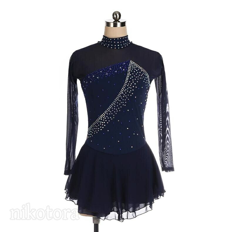 フィギュアスケート衣装 女子 大人 コスチューム アイス ダンス衣装 ドレス 練習 スケート衣装 女の子 人気 華やか きれいめ ダンスウェア 長袖 スケートウェア コスチューム レオタード スタンダード レッスン着 発表会 演出服 ステージ衣装 競技着 ダンス衣装 紺