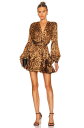 ドレス レディース 長袖 イン 魅惑的 ディープ Vネック ヒョウ柄 ランタン スリーブ ハイウエスト フリル