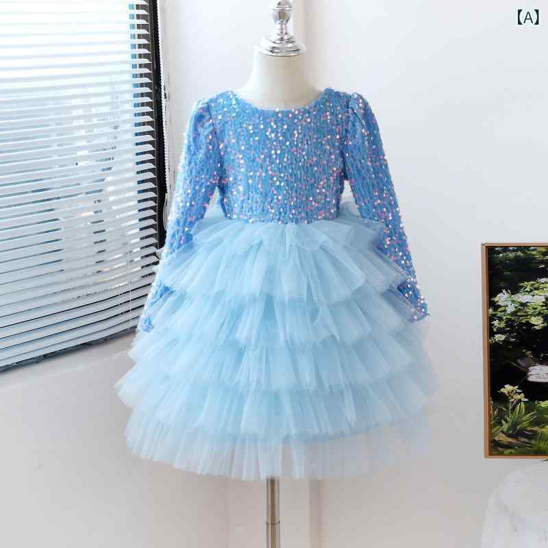 ワンピース 女の子 キッズ プリンセスドレス 長袖 スパンコール ボリューム チュールスカート バックオープン 春秋 一歳 誕生日 バースデー フォーマル セレモニー 結婚式 発表会 パーティー お呼ばれ 記念日 ドレス 柔らかい