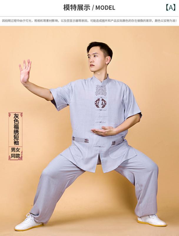 メンズ レディース 夏 太極拳 スーツ 体操服 武術 武道着 トレーニング ウェア マーサージ師 ユニホーム 中華風 綿 リネン 春秋 刺繍 練習 服