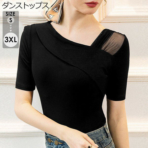 社交ダンス衣装 トップス 長袖 半袖 ラテンダンス 衣装 ダンストップス ダンスウェア ダンス衣装 ストレッチ着 ステージ衣装 舞台 ブラック 黒 レッスンウェア ラテン モダン コーラス衣装 大きいサイズ
