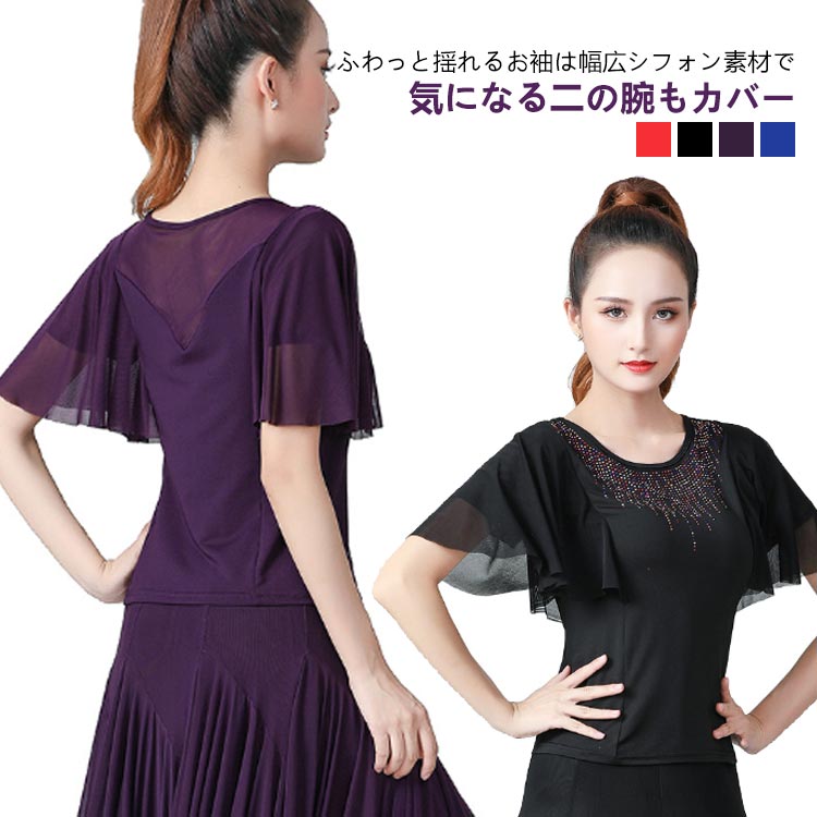 社交ダンス衣装 トップス 可愛い フリル Tシャツラテンダンス 衣装 レッスン着 フラメンコ 衣装 モダン ダンスウェア 社交ダンス 衣装 練習着 コーラス衣装 無地 ダンス着 社交ダンス 衣装 レッスン 練習着 レディース 発表会 団体演出服 おしゃれ S-4XL