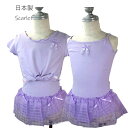 バレエ レオタード 子供 子供用レオタード 日本製 ジュニアTシャツ付きキャミレオタード スカートチェック柄 ライラック・ピンク・ブルーLL(130-140)綿素材【Scarlet】