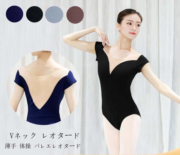 ダンス服 バレエ レオタード 背中 Vネック コンクール バレエレオタード バレエ衣装 演出用 ダンスウエア バレエダンス 大人 バレエ用品 社交ダンス 新体操 ウォームアップ 練習着 半袖 ジャズ ダンス レッスン ストレッチ 競技 チャチャ 舞台 スポーツ オールインワン