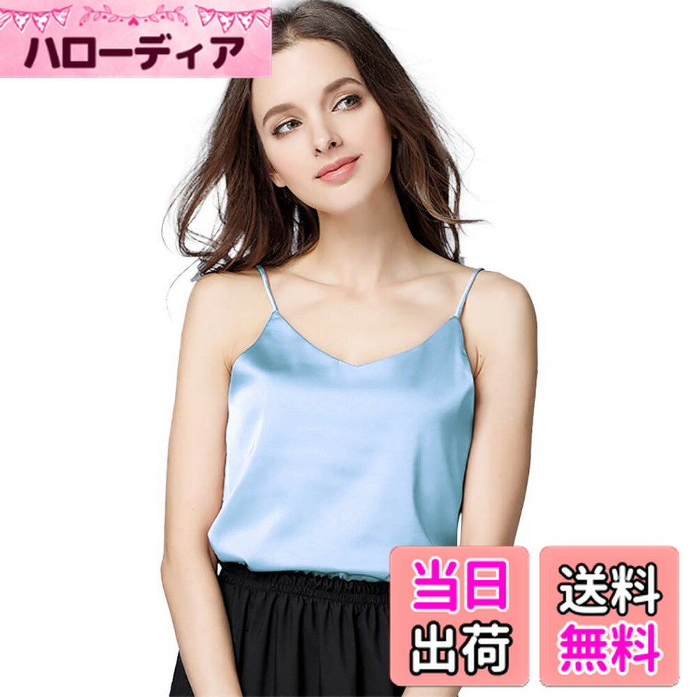 【送料無料】[Euyqs] シルク キャミソール Vネック シンプル サテンのベスト (ライトブルー, L)