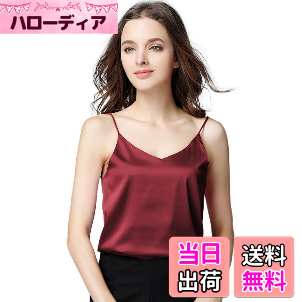 【送料無料】[Euyqs] キャミソール Vネック シンプル サテンのベスト (ワインレッド, XXL)