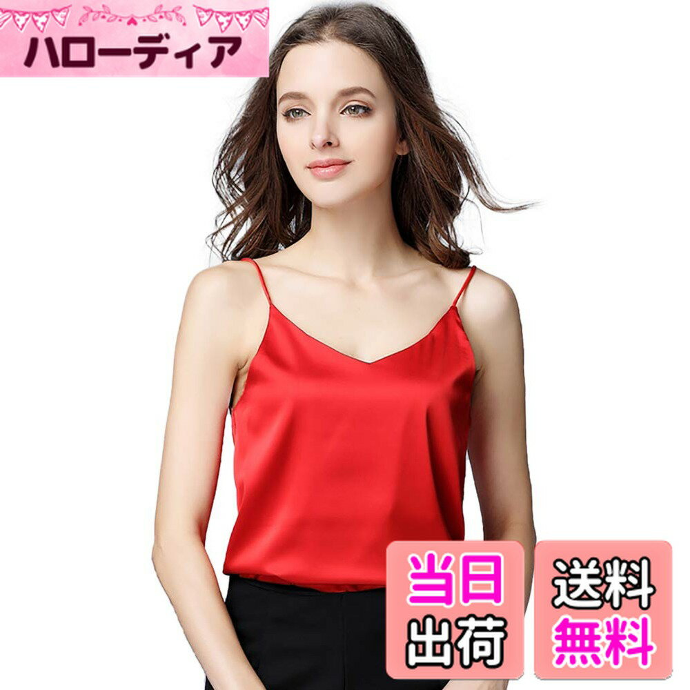 【送料無料】[Euyqs] シルク キャミソール Vネック シンプル サテンのベスト (レッド, S)