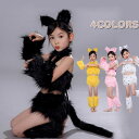 キッズダンス衣装 5点セット 猫耳付き キラキラ キャット 女の子 可愛い パーティー ダンスウエア 袖なし へそ出し ガールズ 舞台 おしゃれ ステージ 発表会 演出団服 キッズコスチューム チアガール 上品 注目 仮装 ダンス衣装 全4色 可愛い