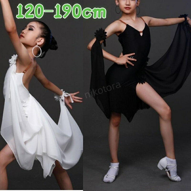 女の子 ダンス衣装 キャミソール +袖カバー スドレス フリンジ ラテン衣装 国際ジュニアキッズダンス衣装ワンピース パーティー 舞台 演出服 競技着 練習着 ダンスウェア 演出 学生 文化祭 学園祭 子供用 ラテンドレス 可愛い きれいめ ジュニア ダンスウェア