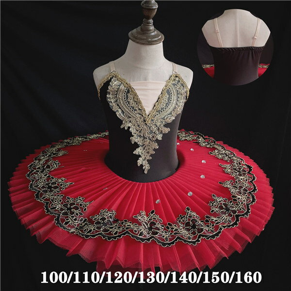 クラシックチュチュ バレエレオタード 子供ダンス衣装 チュチュ バレエ 子供バレエ 子供用舞台衣装 バレエ発表会 レオタード 女の子 ブラック レッド 刺繍 豪華 袖なし キャミソール ノースリーブ 可愛い バレエダンス ダンス服 上品 練習着 演出用 100/110/120/130/140/150