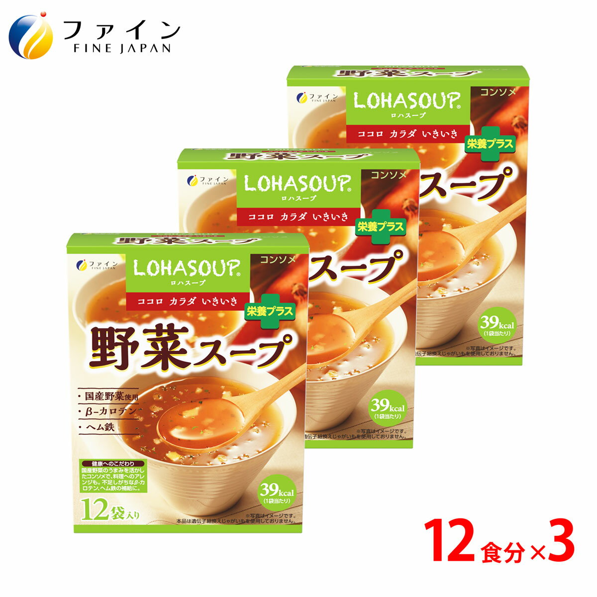 野菜スープ 12食入(箱タイプ) 3個セット 栄養 バランス カロリー を心配される方や ダイエット 中 の 朝食 夜食 代わりに おすすめ 非常食 保存食 レトルト ファイン 防災 向き